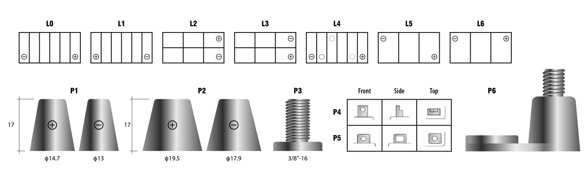 Type of terminal post/Loại cọc bình P1